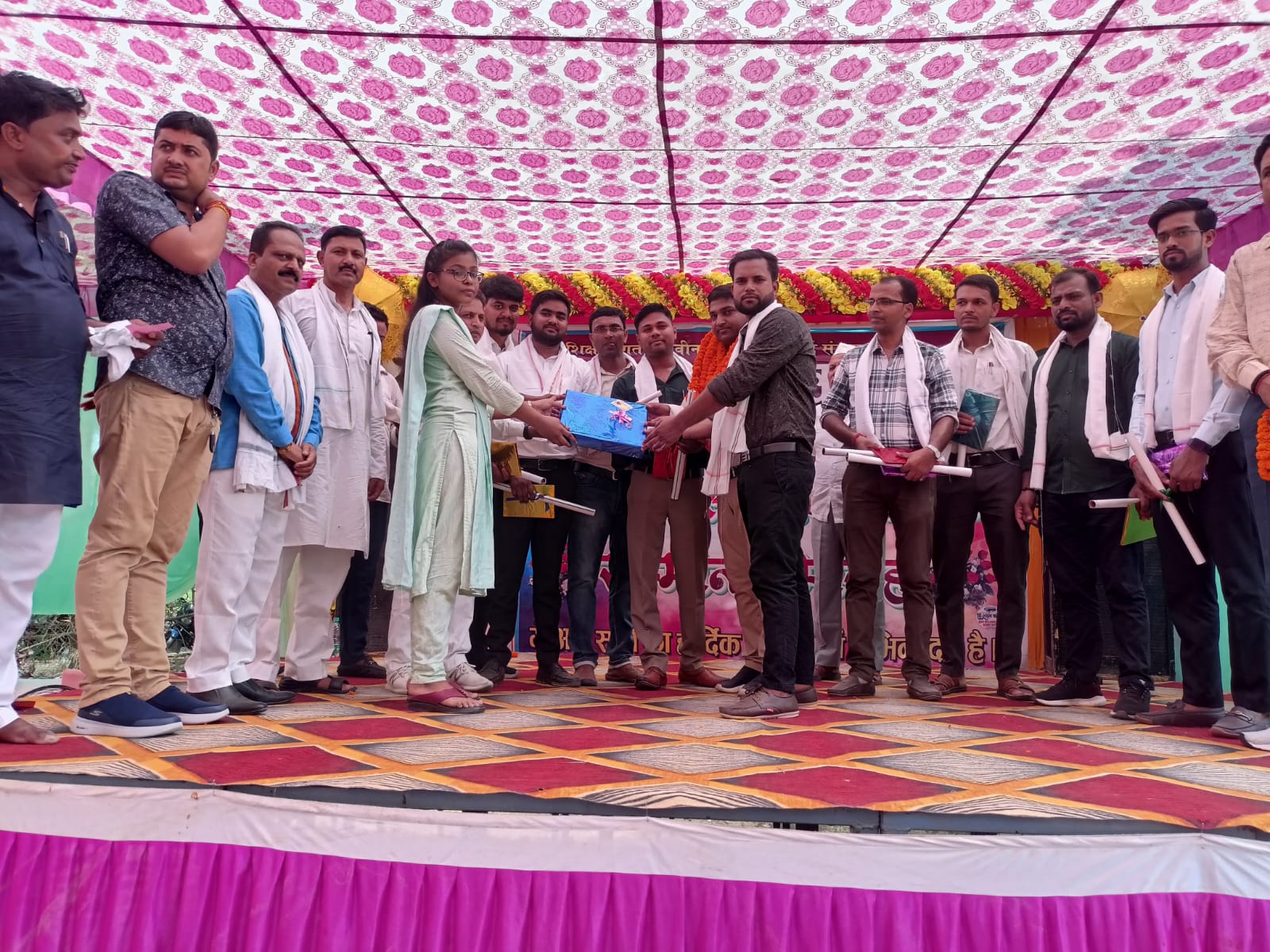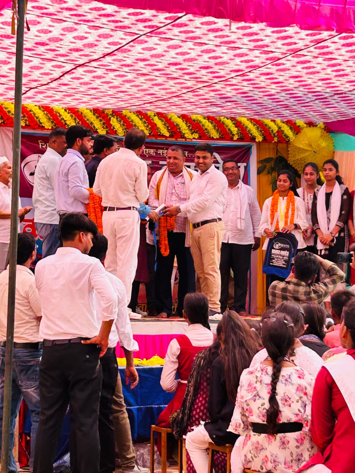 During the Annual Function at Eklavya Classes, the topper students were honored for their outstanding academic achievements. A special bag distribution ceremony was held, where the toppers received beautifully designed school bags as a token of appreciation. Group photos were taken to capture this proud moment, symbolizing their hard work and dedication. The event inspired all students to strive for excellence and celebrate the spirit of learning and success.